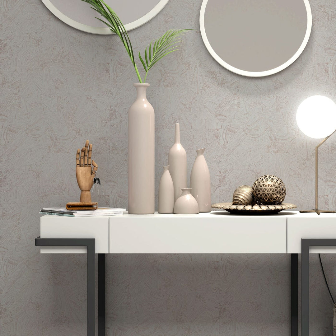 Ideāls līdzsvars starp taupe dabisko siltumu un bronzas smalko mirdzumu rada abstraktu dizainu, kas ir gan organisks, gan izsmalcināts. Šis harmoniskais apvienojums rada dziļuma un izsmalcinātības sajūtu, piešķirot mūžīgu šarmu jebkuram interjeram.