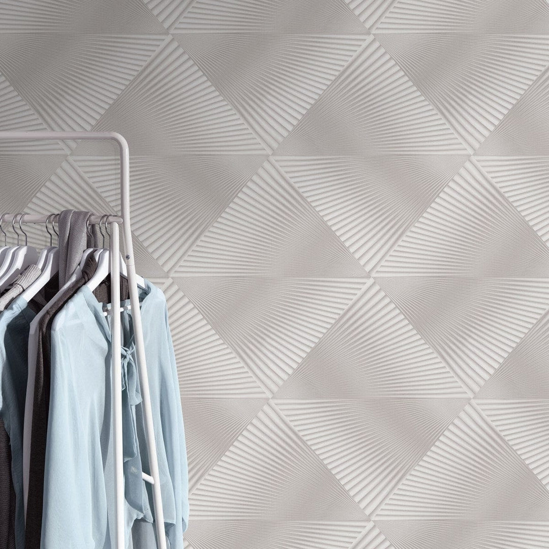 Atjaunojiet savu mājokli ar šīm modernajām Erismann tapetēm, kas piedāvā lielu ģeometrisku rakstu taupe krāsā. Ar savu 3D vēdekļa dizainu, šīs tapetes piešķir jebkurai sienai izsmalcinātu dimensiju un dinamisku dziļumu. Trīsstūra formas rada iespaidīgu efektu, kas piepilda telpu ar eleganci.