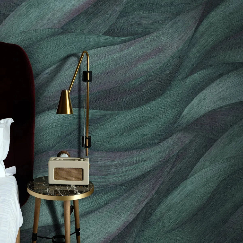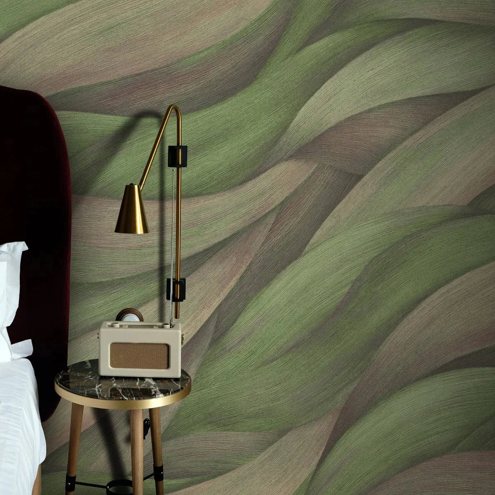 Zaļas viļņveida tapetes dabiskai un atsvaidzinošai telpai   Tapetenshop.lv