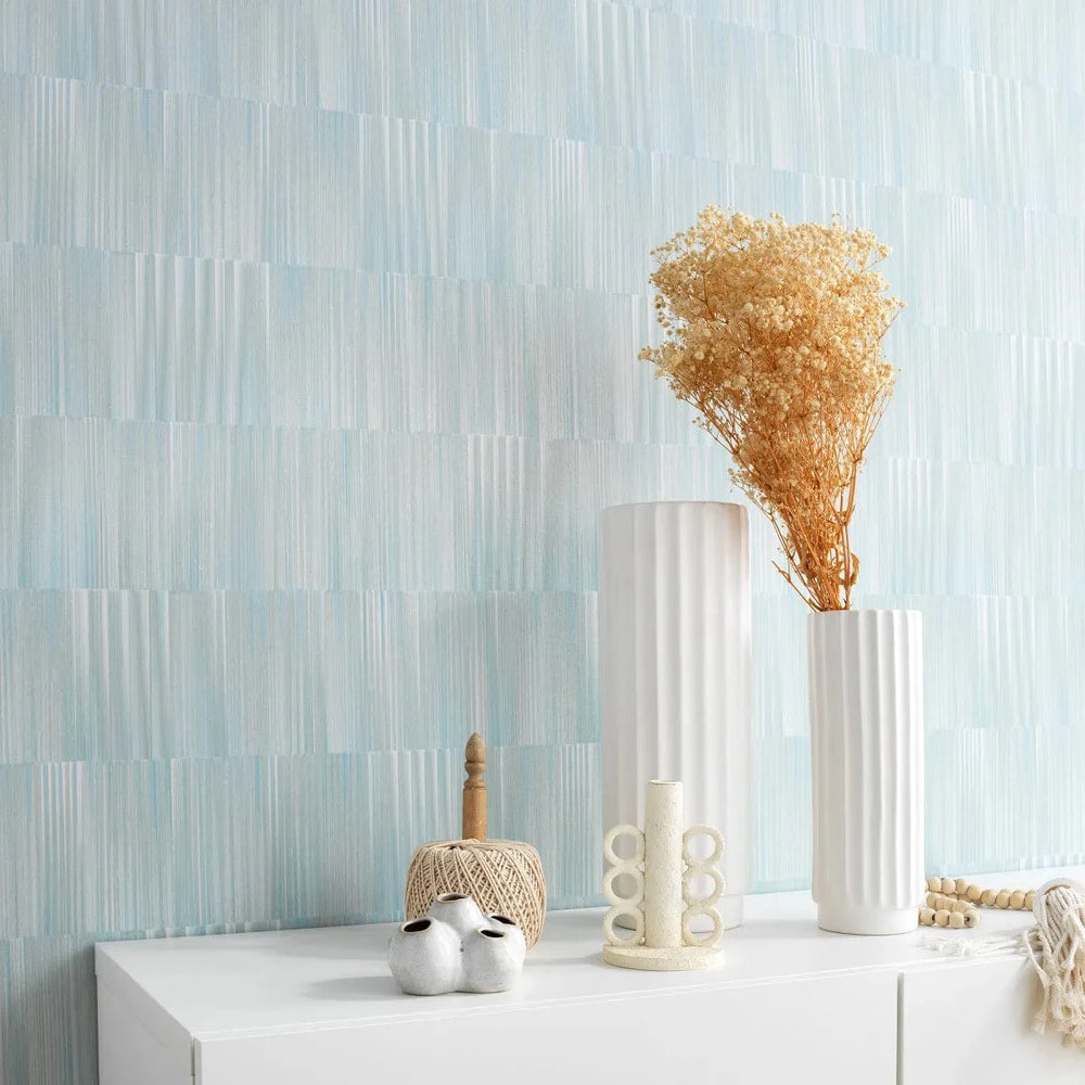 Flizelīna tapetes ar abstraktām vertikālām līnijām tirkīzā krāsā – spilgts un stilīgs dizains Erismann