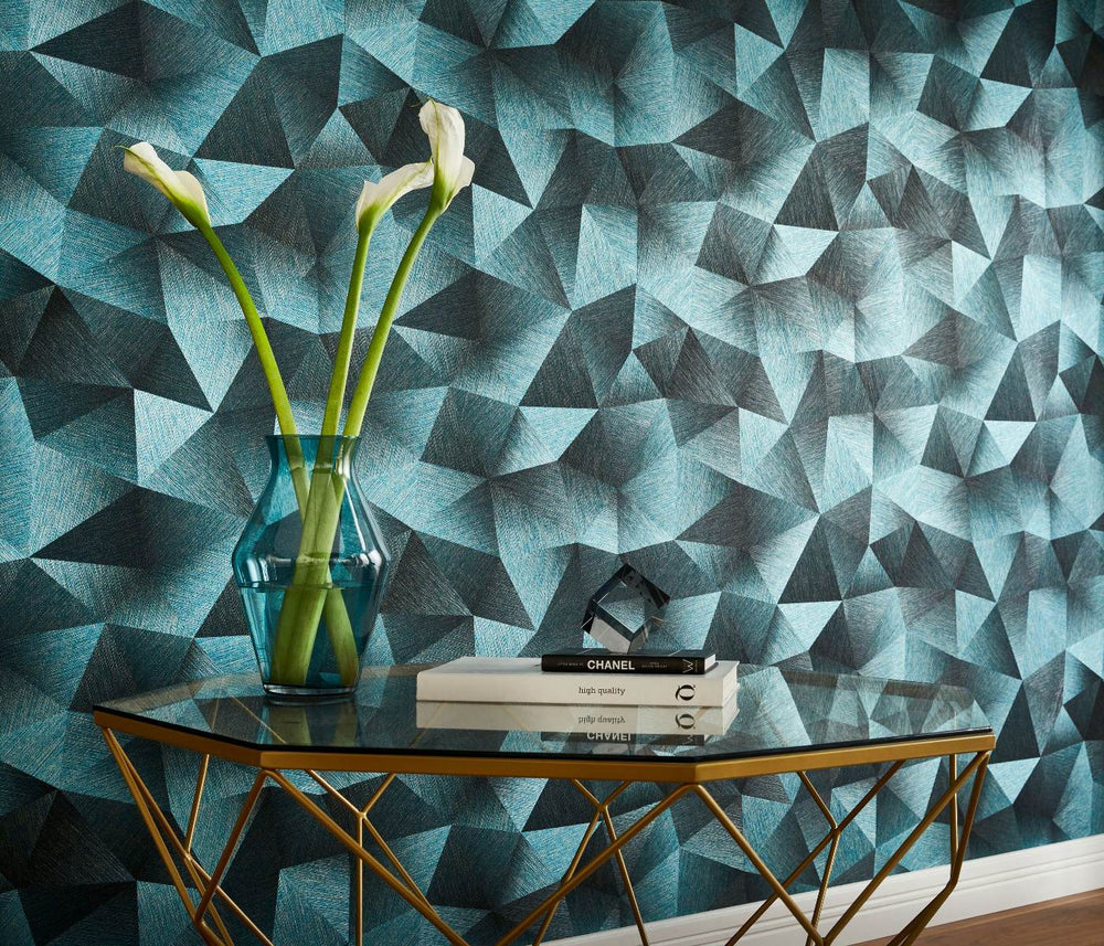 Tapetes ar grafisku dizainu tirkīzā krāsā, glitera efekts, 3713737