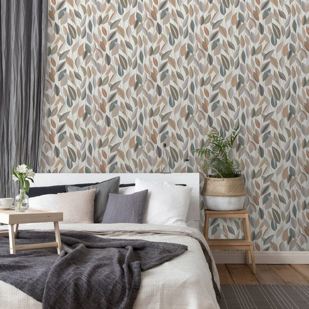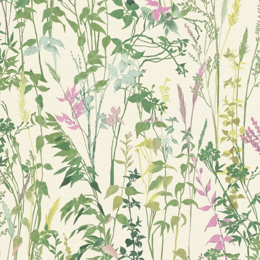 Lauku stila tapetes ar lapām un zāli krēmzaļos toņos   Tapetenshop.lv
