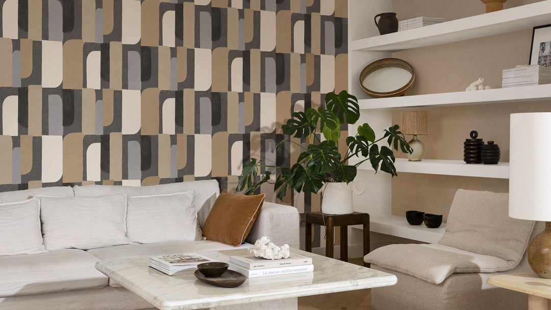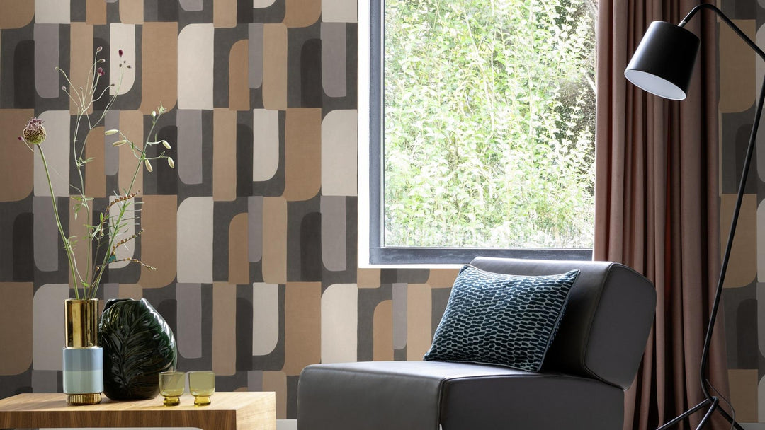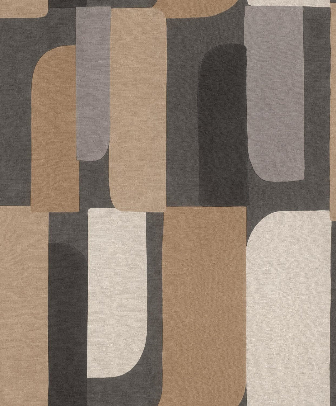 Tapetes ar grafisku rakstu: brūna, melna, pelēka, RASCH, 1205445
