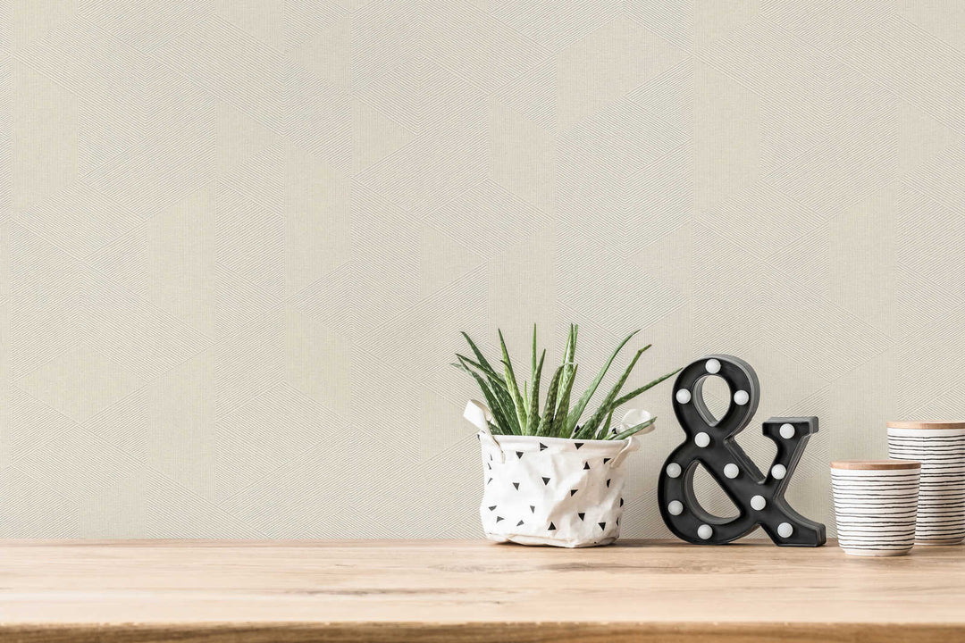 Tapetes ar grafisku rakstu un mirdzuma efektu baltā krāsā, 375611, (atlikums: 5 ruļļi), 🚀