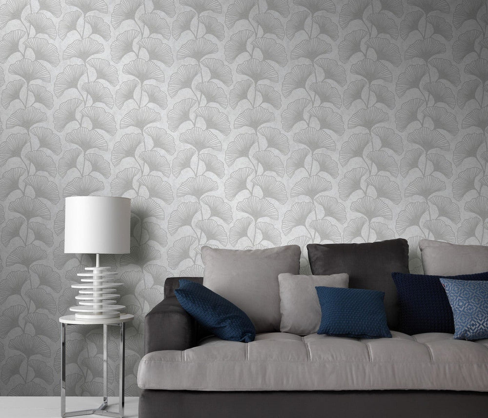 Skandināvu stila tapetes ar dabas rakstu bēšā krāsā, 1362135