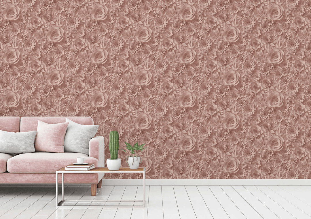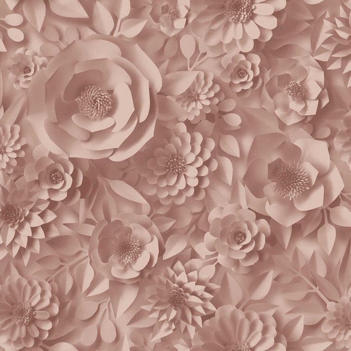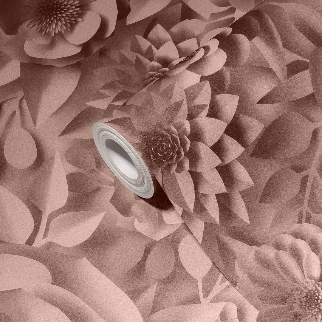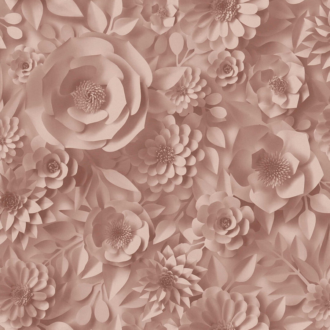 3D tapetes ar papīra ziediem, grafisks ziedu raksts - rozā, 1364156