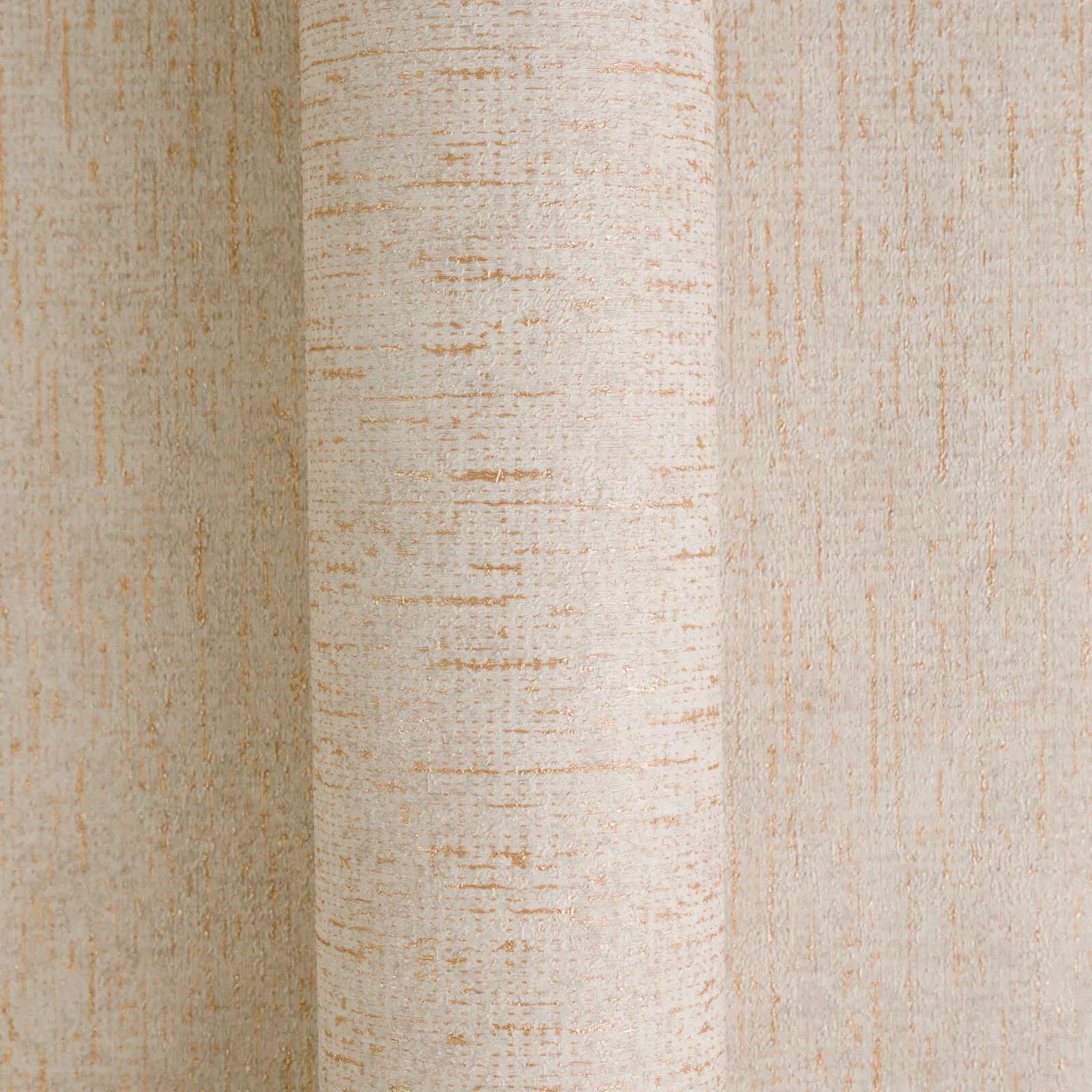 Delikātas faktūras tapetes ar smalkām vertikālām svītrām siltos smilškrāsas un smilšu toņos. Raksts izskatās kā smalks tekstilmateriāls, ko sadala neregulāri, zeltaini brūni akcenti. Virsmā jūtama linu vai vieglas faktūras apmetuma klātbūtne, kas tapetēm piešķir dabisku un neuzbāzīgu eleganci. Mīksto krēmkrāsas un zeltaino toņu krāsu gamma rada mierīgu, mājīgu atmosfēru ar nelielu mājīguma pieskaņu. Neuzkrītošais dizains rada mūžīgu efektu un harmoniski iekļaujas gan modernos, gan klasiskos interjeros.