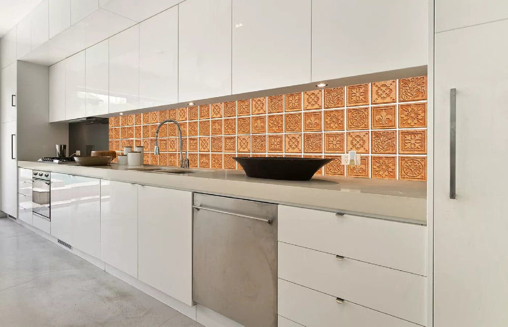 Fototapetes virtuvei ar lamināciju, pašlīmējošas plēve un flizelīns - Sienas flīzes (350x60 cm)