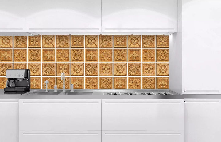 Jaunākās virtuves dizaina tendences pievērš uzmanību pašlīmējošām foto tapetēm virtuves aizmugurējai sienai. Tā vietā, lai noklātu virtuves aizmugurējo sienu ar flīzēm, to var noklāt ar plēvi.