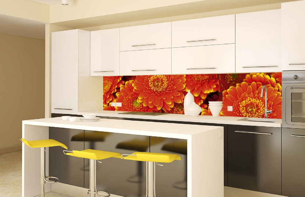 Fototapetes virtuvei ar lamināciju, pašlīmējošas plēve un flizelīns - Gerberas (260x60 cm)