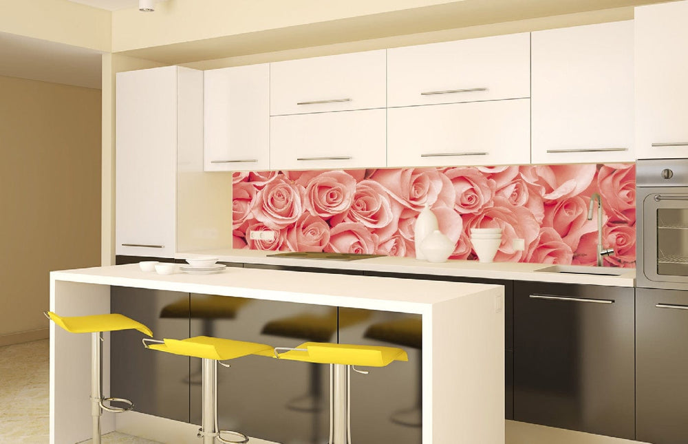 Fototapetes virtuvei ar lamināciju, pašlīmējošas plēve un flizelīns - Rozes (260x60 cm)
