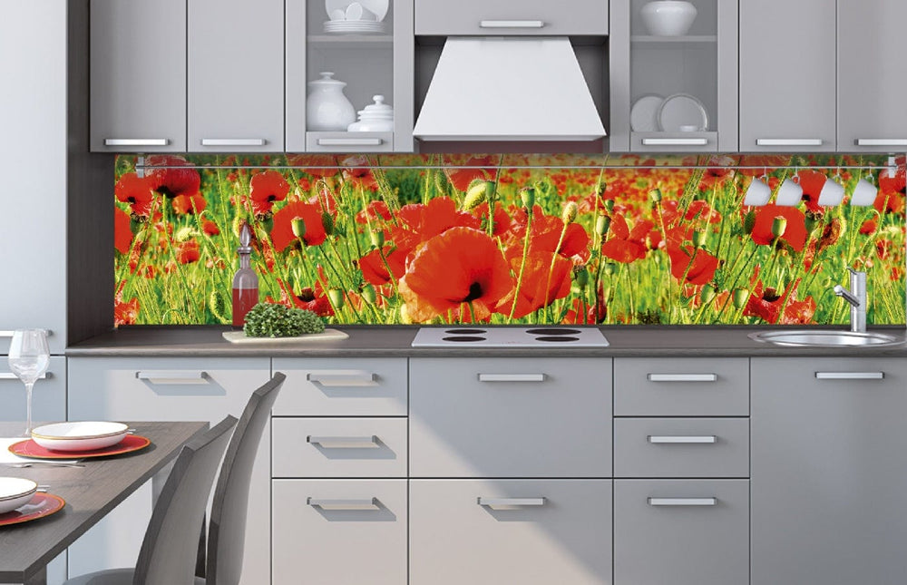 Fototapetes virtuvei ar lamināciju, pašlīmējošas plēve un flizelīns - Sarkanās magones (260x60 cm)