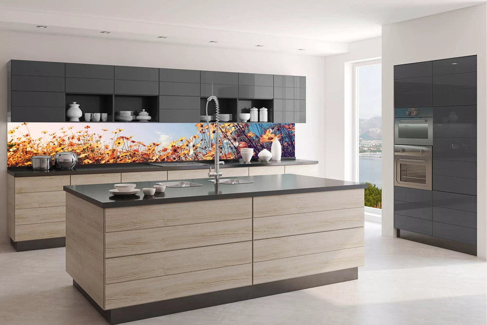 Fototapetes virtuvei ar lamināciju, pašlīmējošas plēve un flizelīns - Ziedu motīvs (350x60 cm)