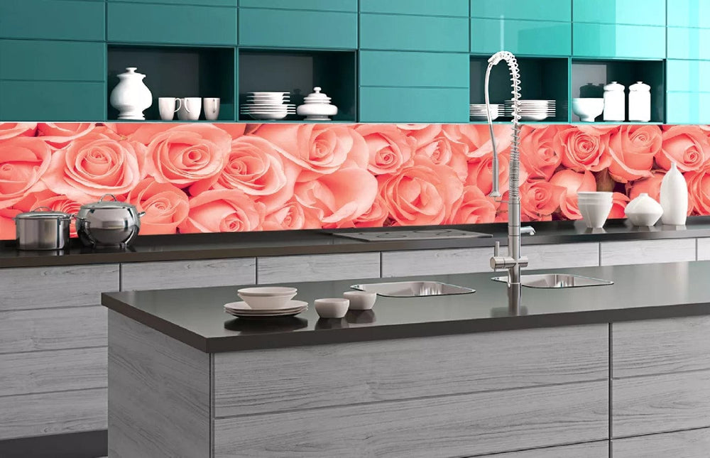 Fototapetes virtuvei ar lamināciju, pašlīmējošas plēve un flizelīns - Rozes (350x60 cm)
