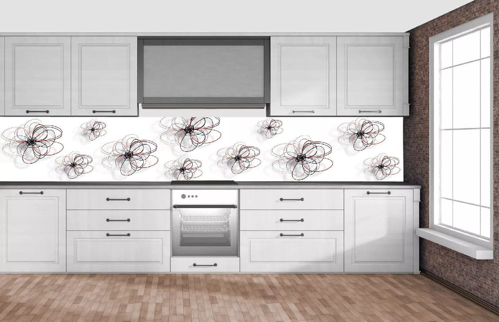 Fototapetes virtuvei ar lamināciju, pašlīmējošas plēve un flizelīns - Stilizēti ziedi (350x60 cm)