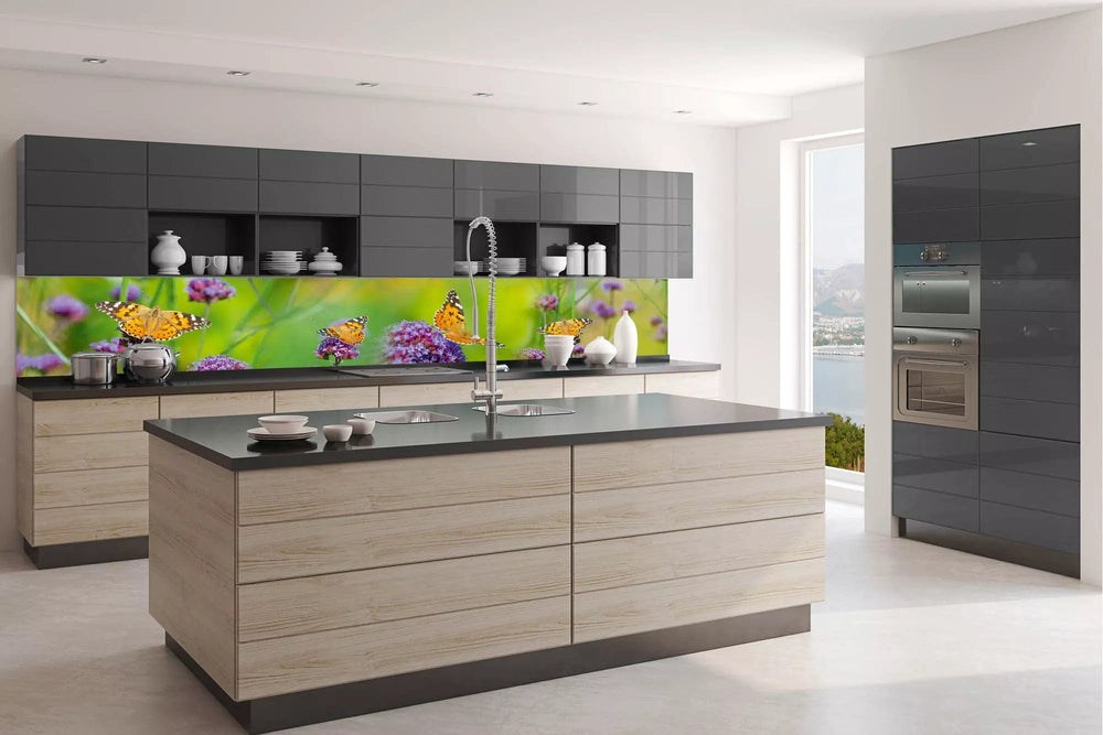 Fototapetes virtuvei ar lamināciju, pašlīmējošas plēve un flizelīns - Tauriņi (350x60 cm)