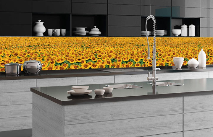 Fototapetes virtuvei ar lamināciju, pašlīmējošas plēve un flizelīns - Saulespuķes (350x60 cm)