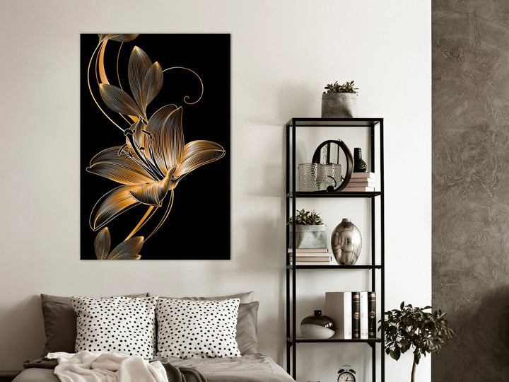 Kanva ar stilizētu ziedu uz melna fona - Liliju maigums (x 1), 130311