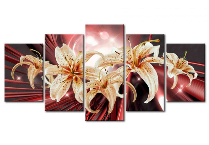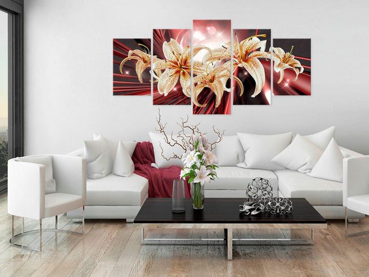 Kanva ar lilijām uz abstrakta sarkana fona - Kaislība, 90607, (x5)