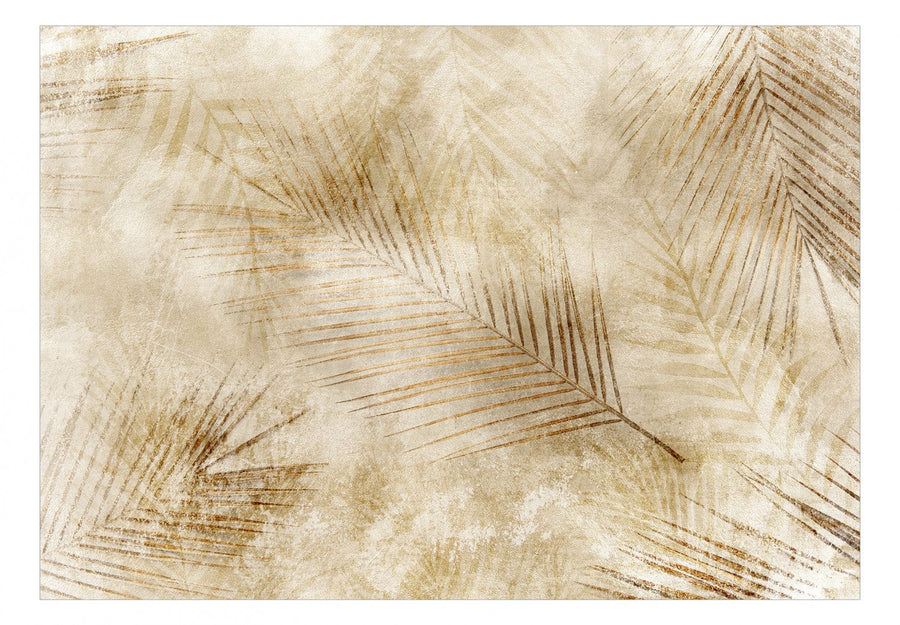Fototapetes  ar smalku palmu lapu motīvu uz smilškrāsas fona G-ART