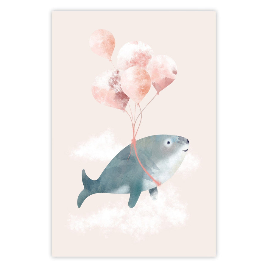 Fototapetes - Vaļis, kas peld mākoņos – pasaku abstrakcija pasteļtoņos, 135376