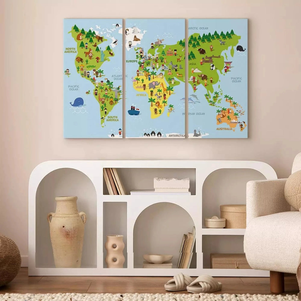Kanva - bērnu istabai - Bērnu pasaules karte, (x 3), 94791