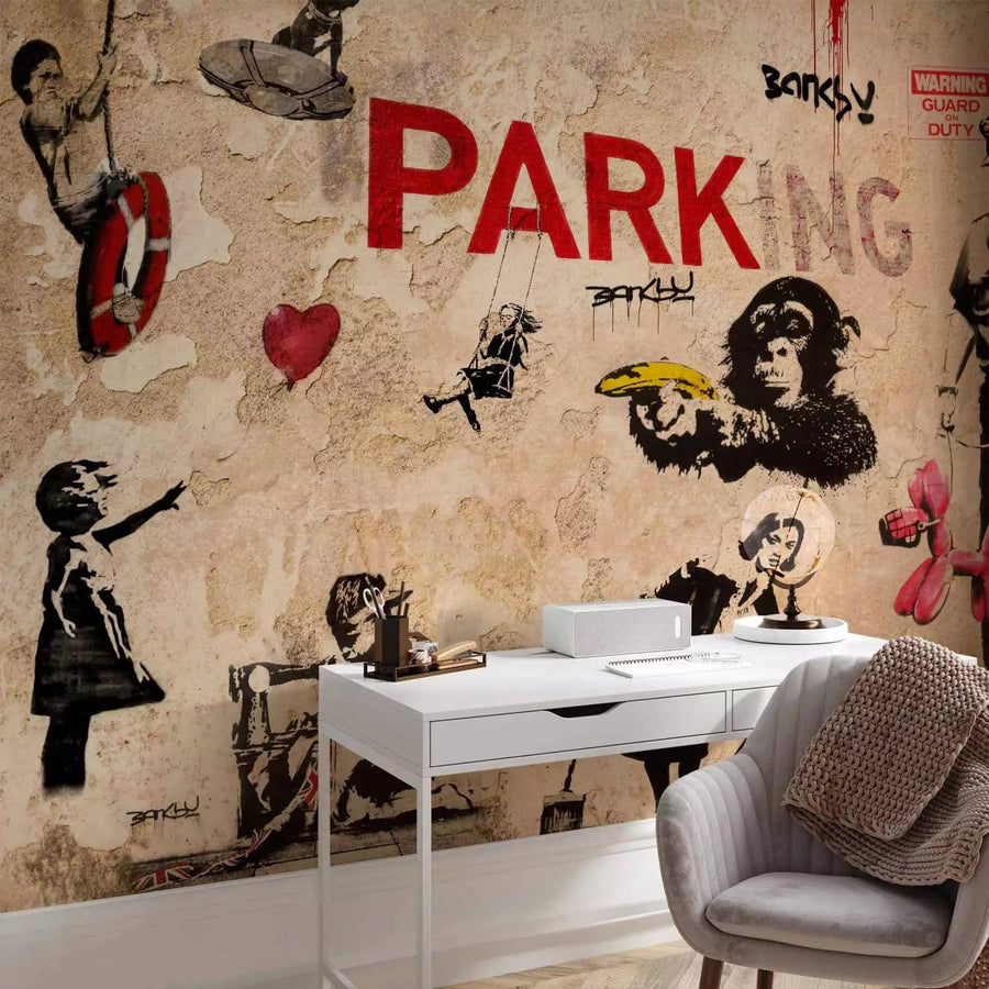Fototapetes ar grafiti Banksy stilā - Variācijas, 65713, bēšā krāsā G-ART