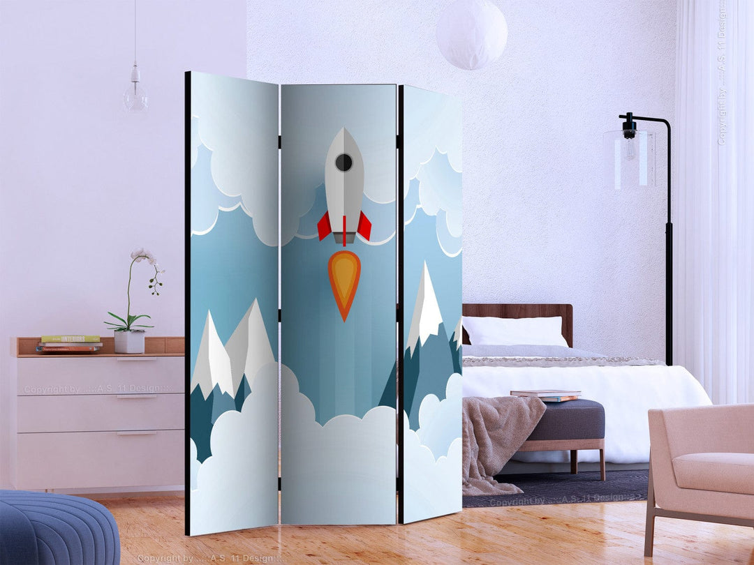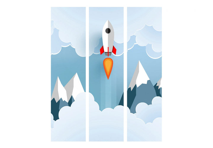 Aizsliertnis sastāv no 3 paneļiem ar bērnu motīvu – lidojošā raķete uz kalnu fona, zilos toņos. Perfekts variants bērnu istabas iekārtošanai.