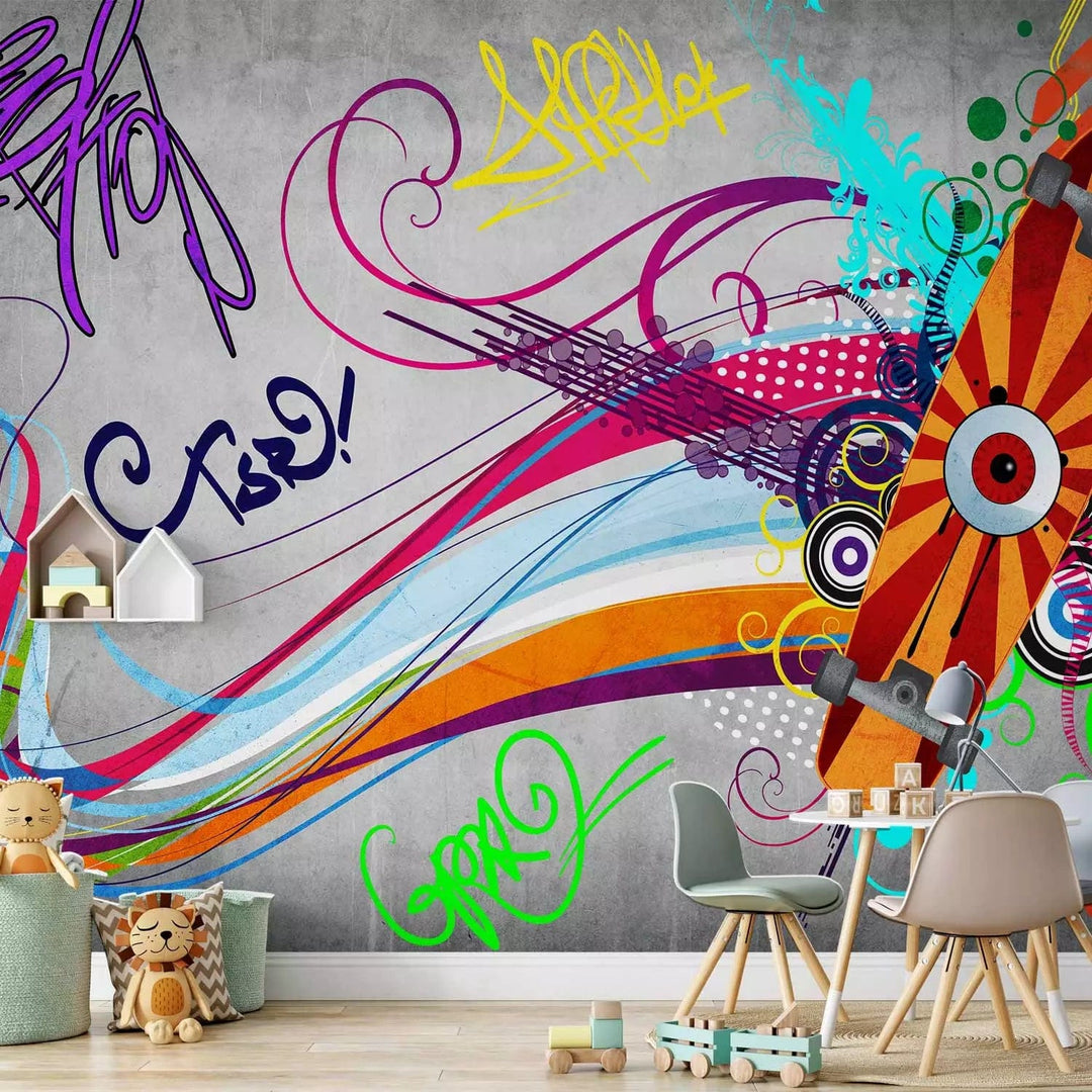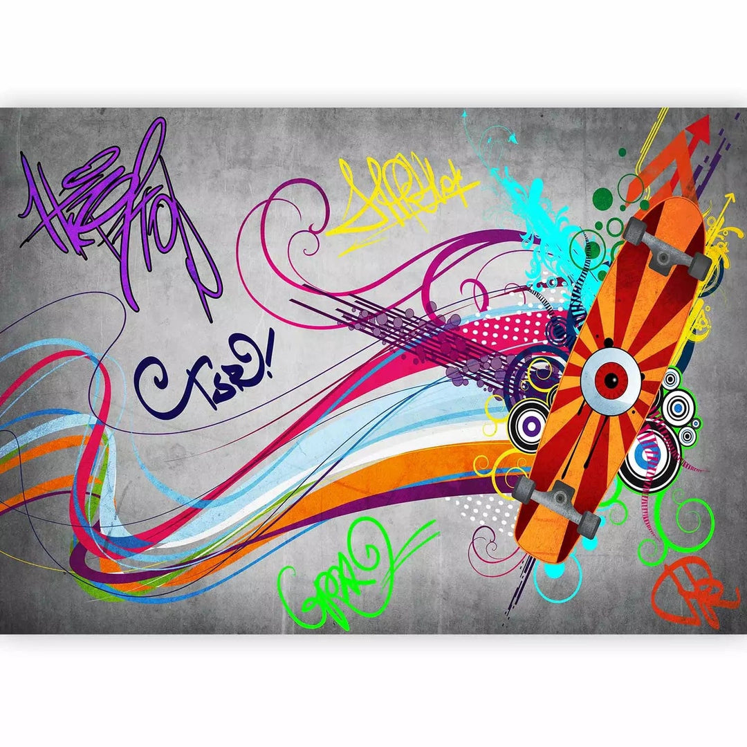 Graffiti fototapetes - zīmējums ar krāsainām svītrām uz pelēka fona, 60561