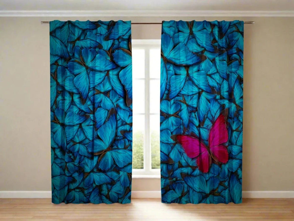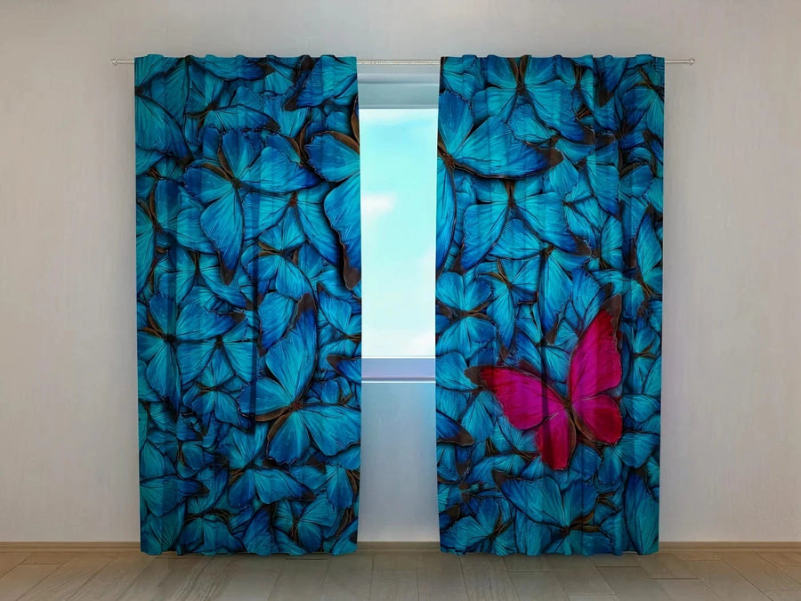 Dienas un nakts aizkari ar taureņiem zilā un sarkanā krāsā - Sajūsma Tapetenshop.lv