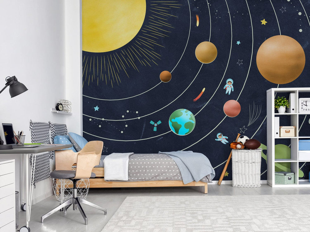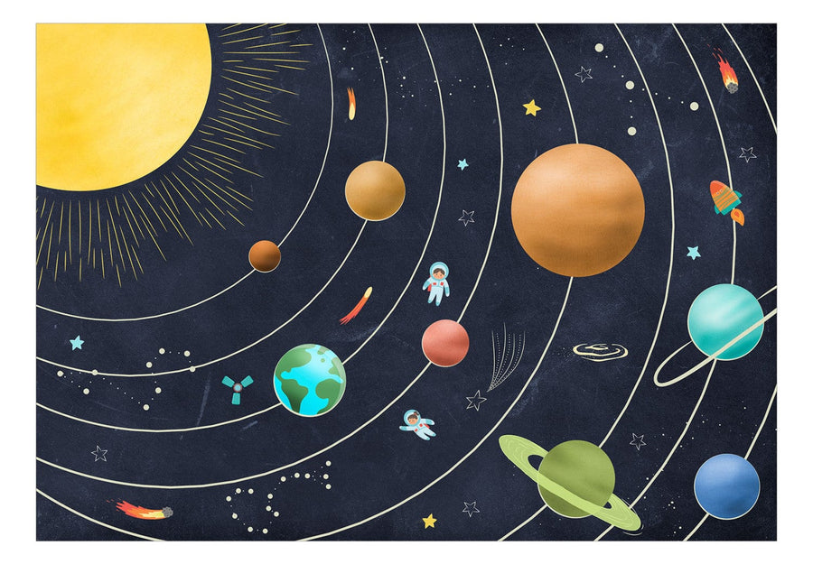 Bērnu fototapetes - Saules sistēma ar krāsainām planētām un zvaigznēm G-ART