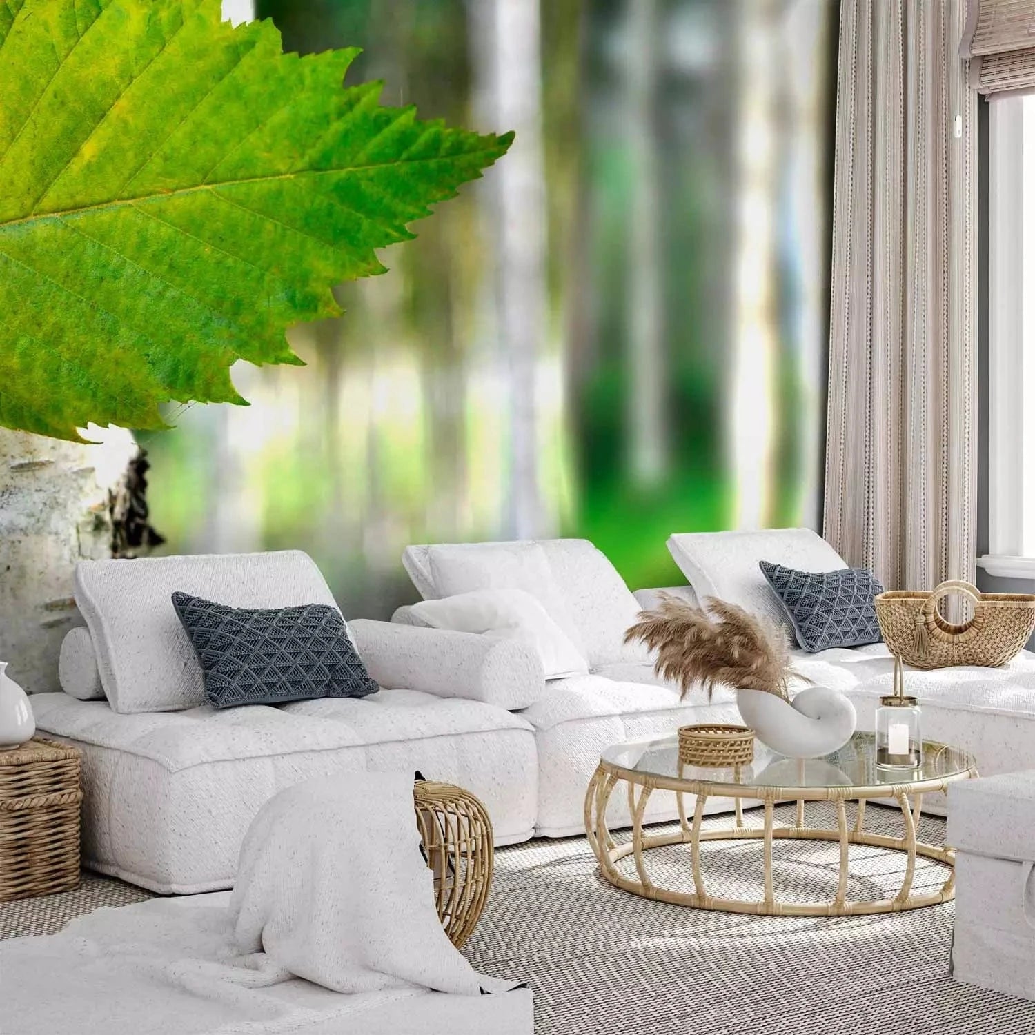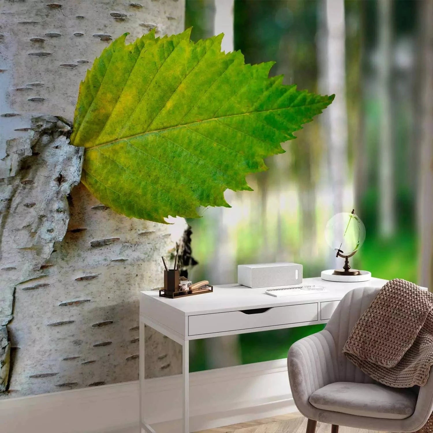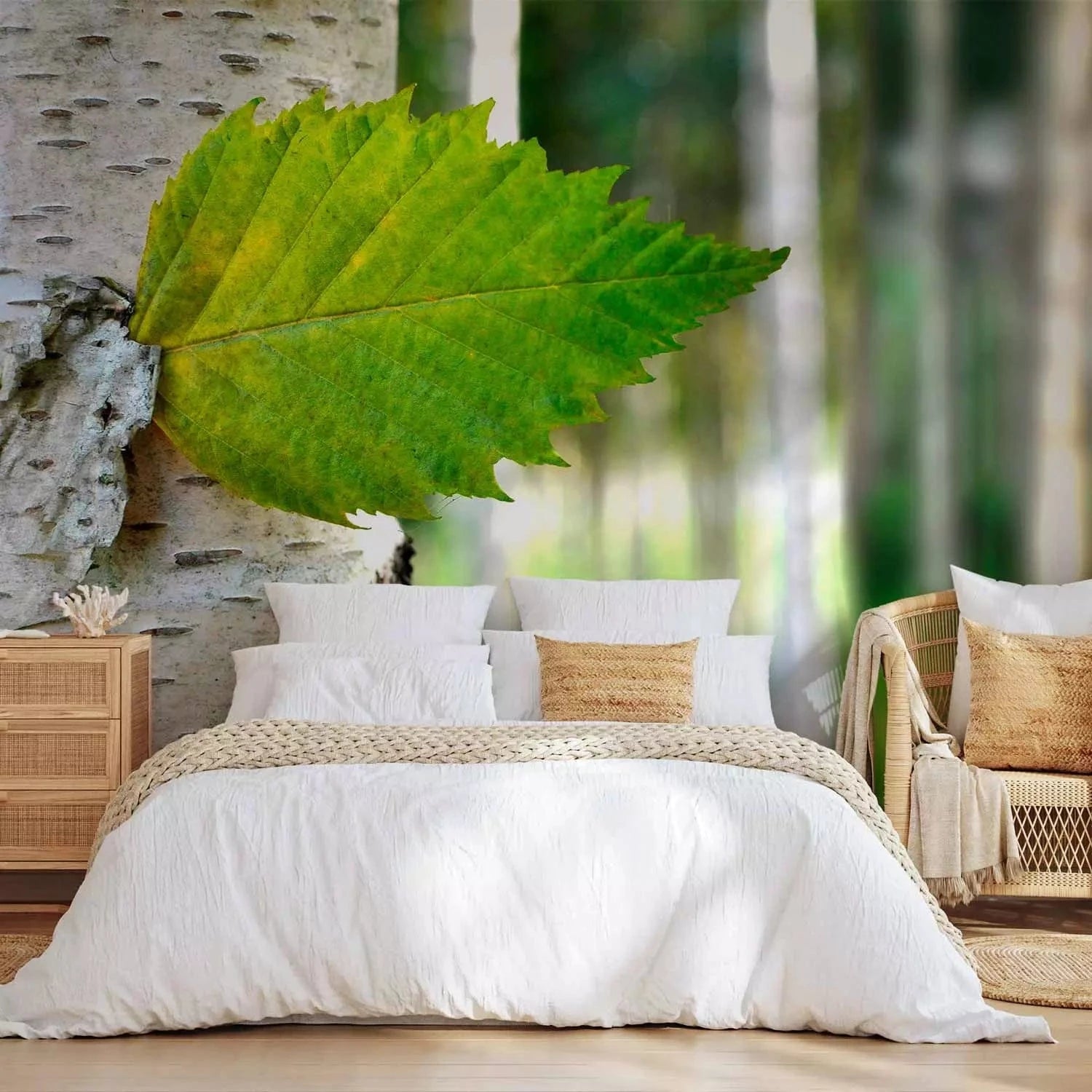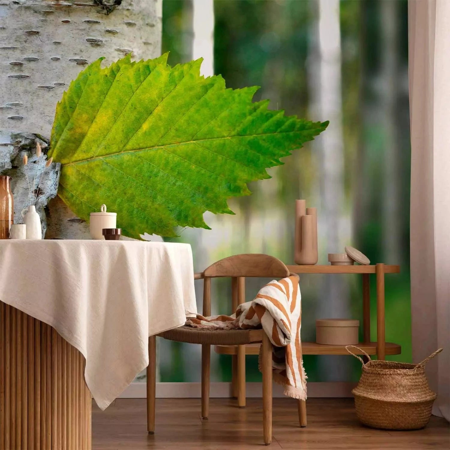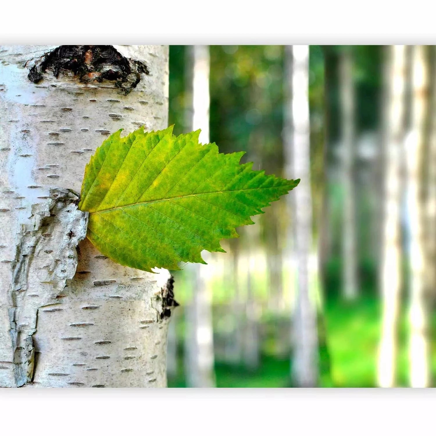Fototapetes - Spilgta meža ainava ar bērzu un saules stariem, 60443