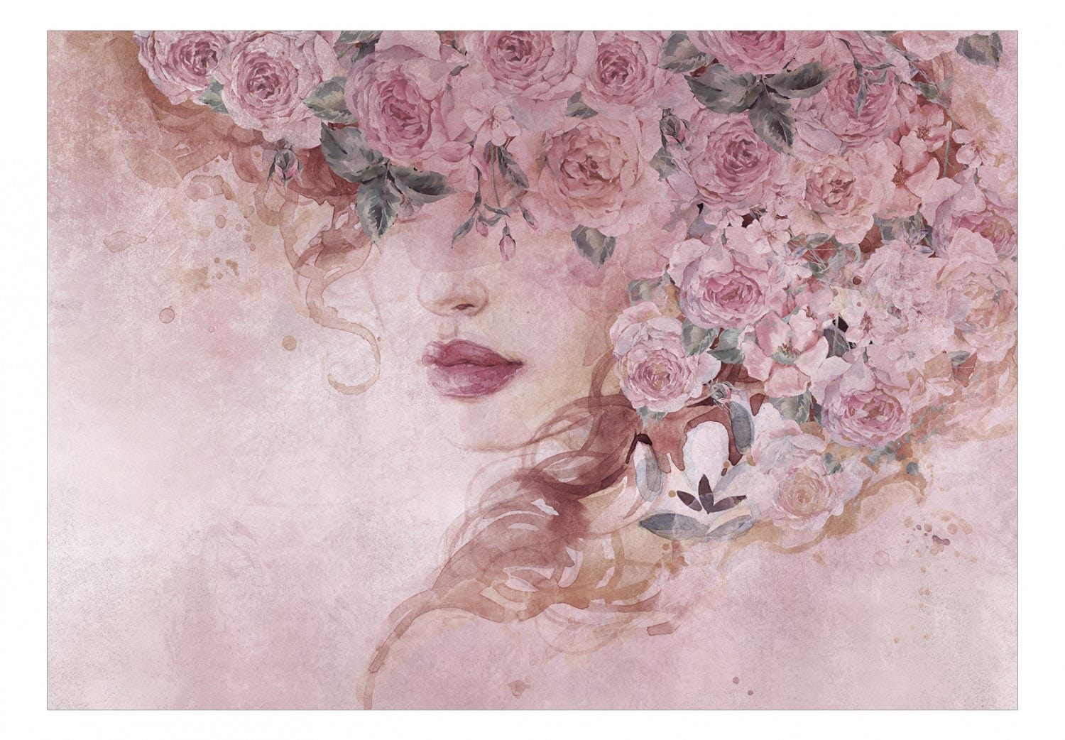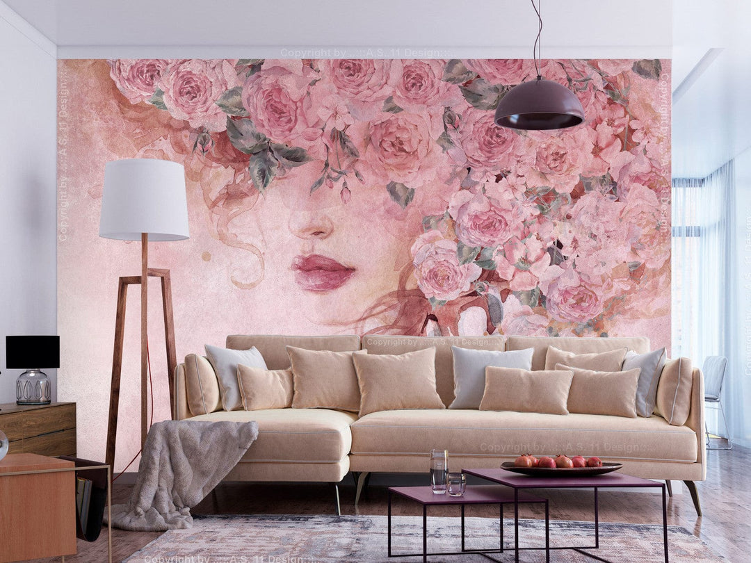 Fototapetes ar skaistu sievieti un ziediem rozā krāsā, 135026