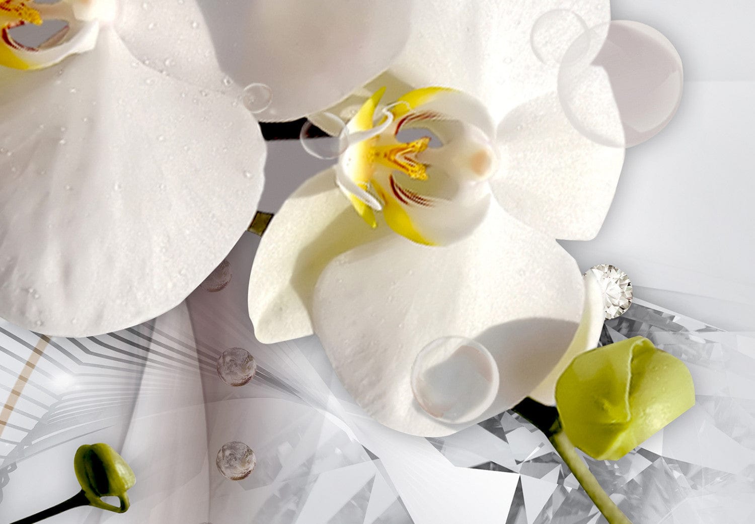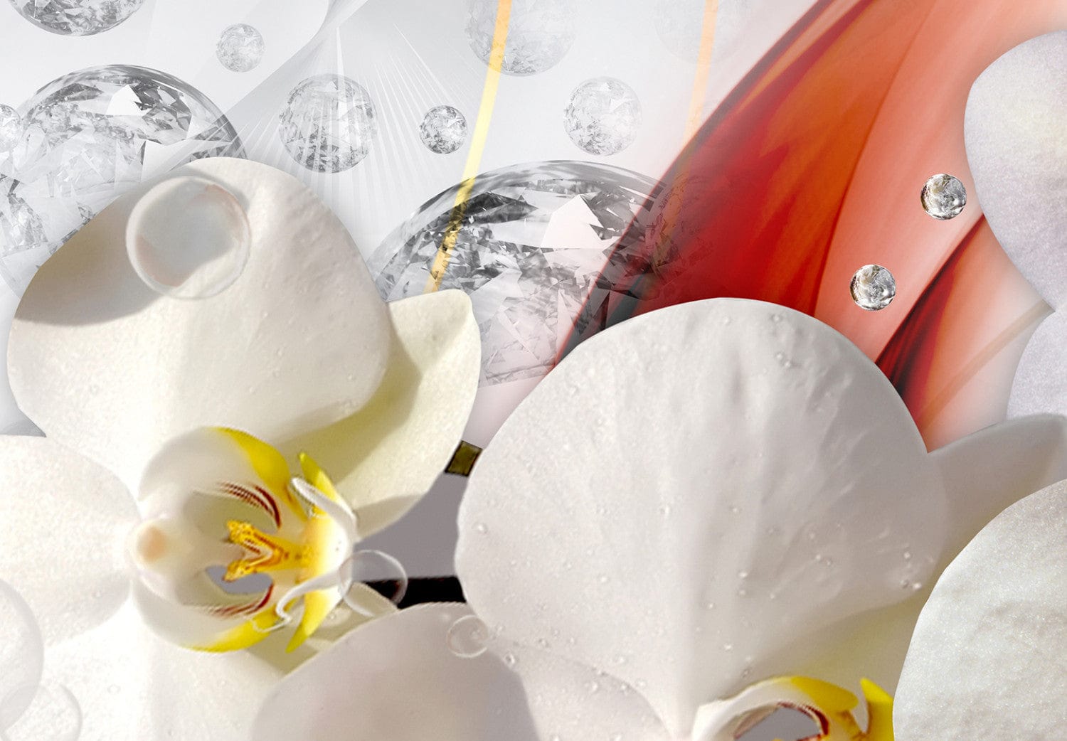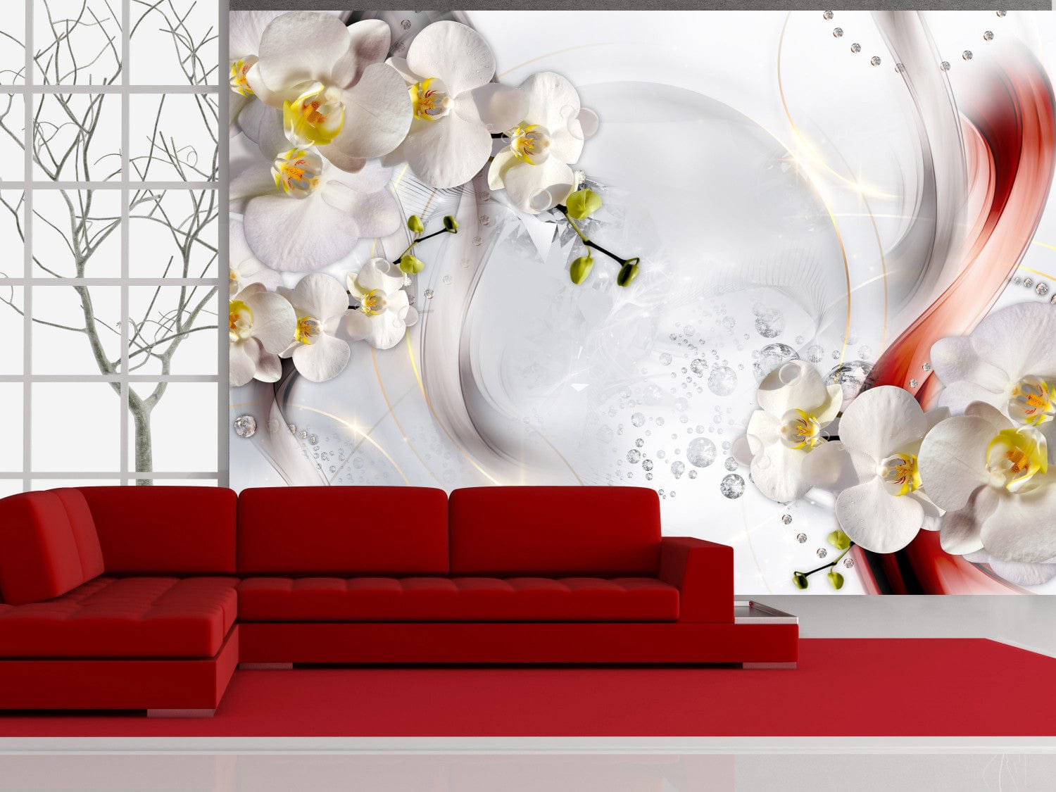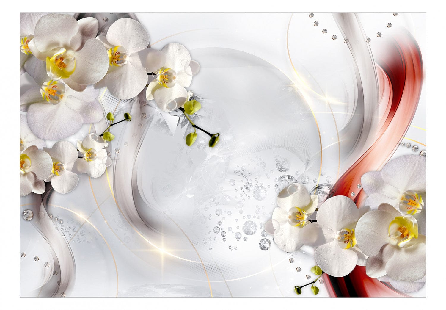 Fototapetes - ziedu kompozīcija uz balta fona ar viļņiem, 132223
