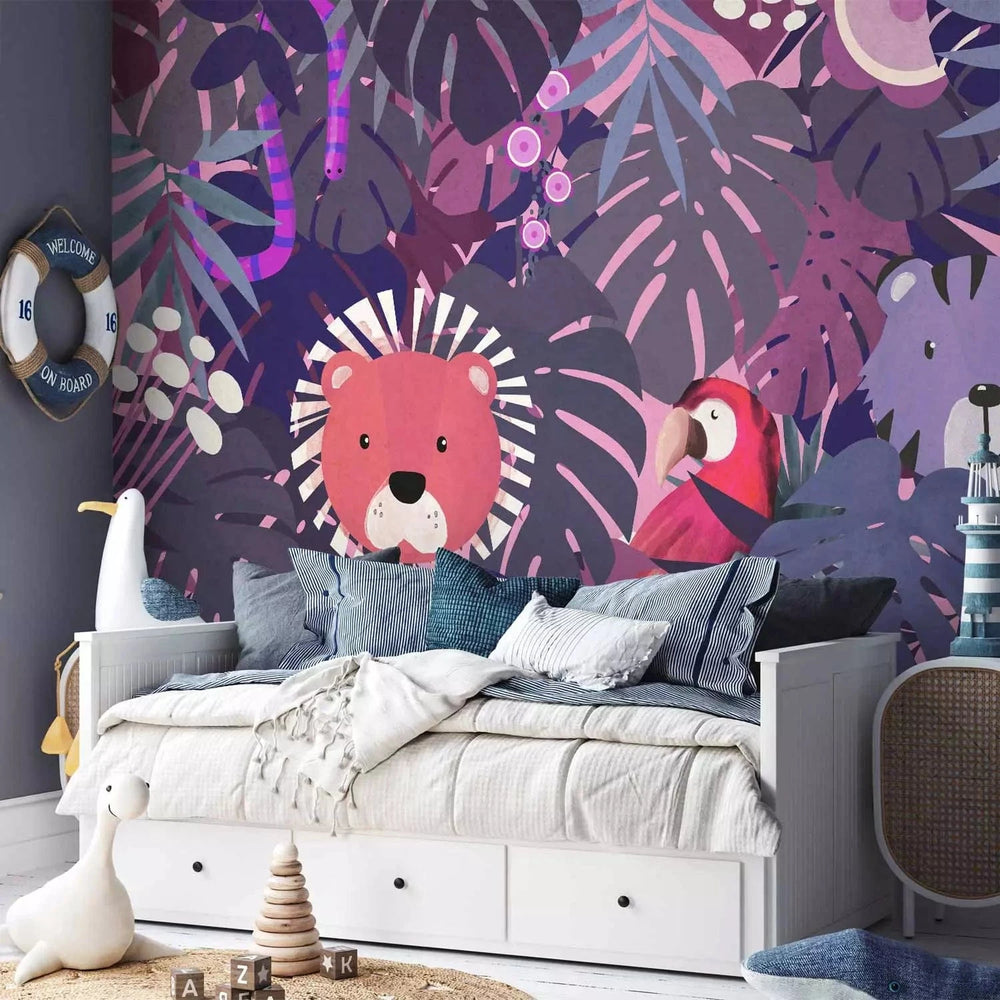 Fototapetes bērnistabai - Džungļi – motīvs ar violetam lapām, 143575