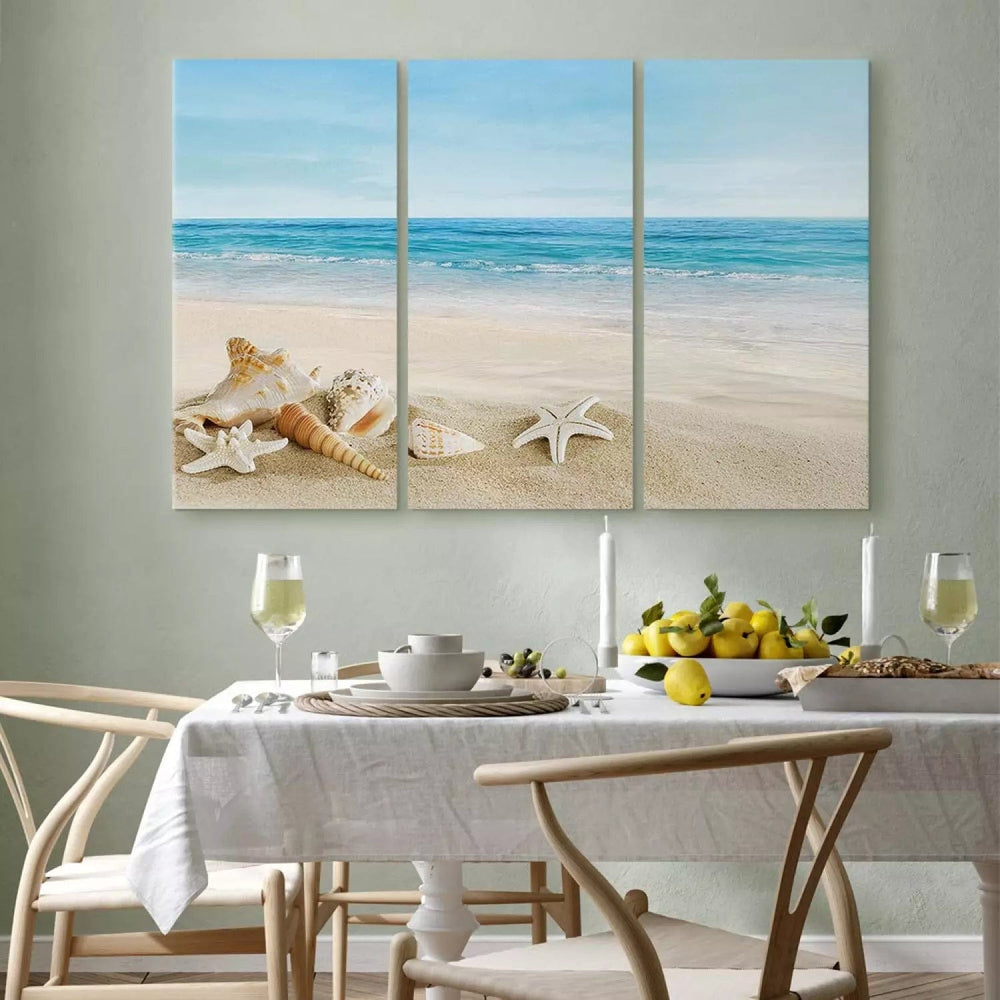 Kanva - mierīga pludmales aina ar gliemežvākiem un jūraszvaigznēm G-ART
