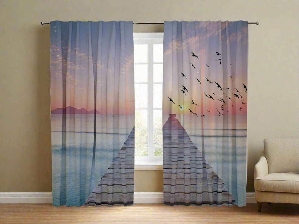Aizkari viesistabai ar saulrietu - Kaijas saulrietā Tapetenshop.lv