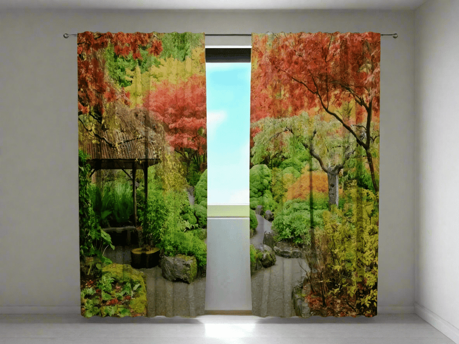 Aizkari ar reālistisku apdruku - Rudens japāņu dārzs - uz pasūtījumu Tapetenshop.lv