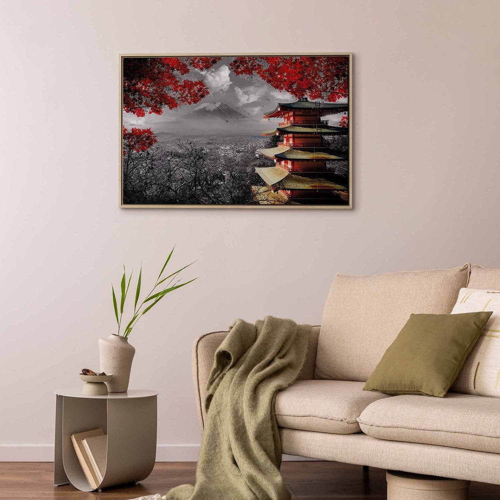 Glezna koka rāmī - Japāņu ainava - pelēka, sarkana G ART