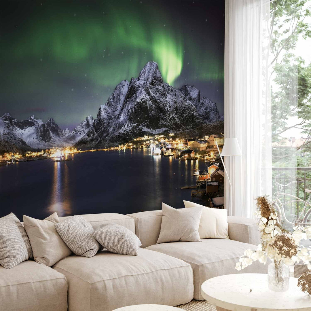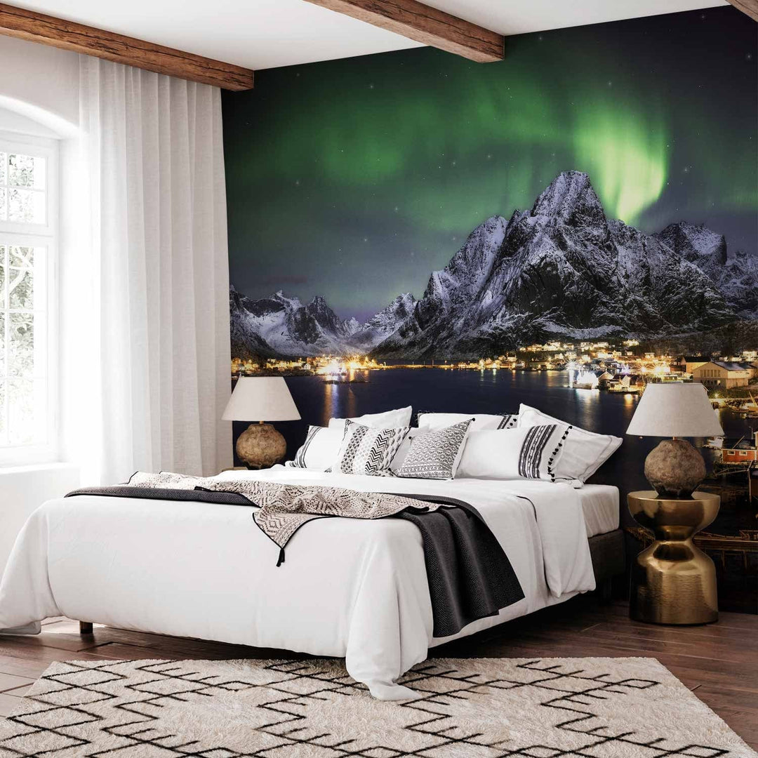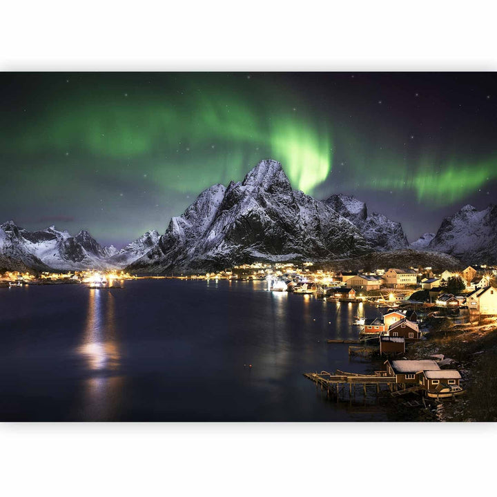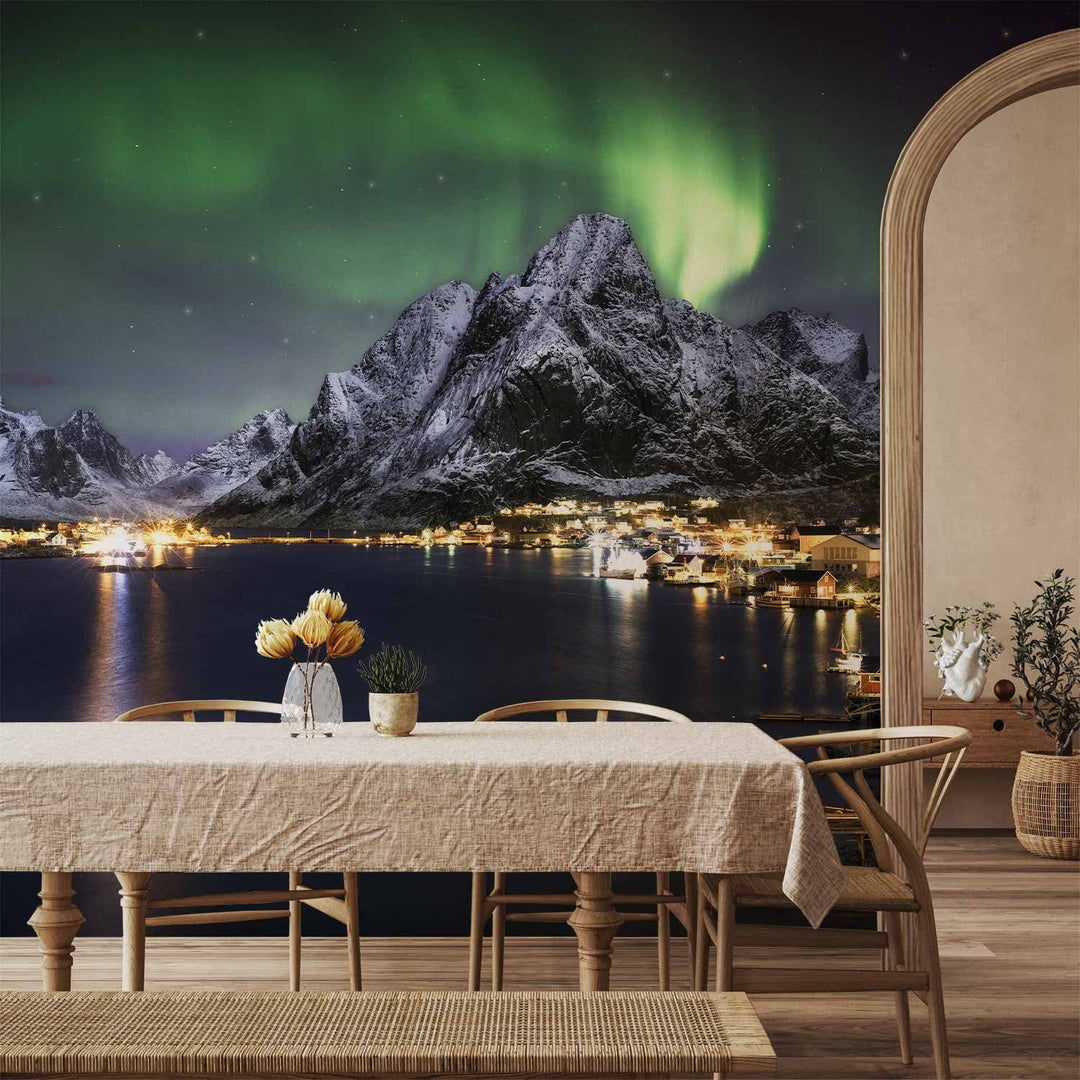 Fototapetes ar ziemeļblāzmu virs kalniem - Ziemeļblāzma, 62454