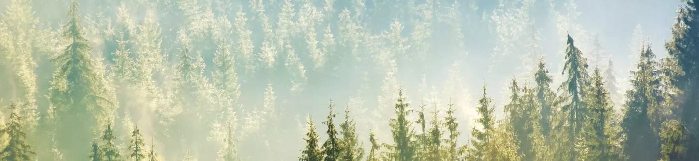 Fototapetes virtuvei ar lamināciju, pašlīmējošas plēve un flizelīns - Migla virs meža (260x60 cm)