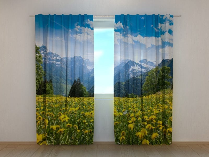 Aizkari ar pieneņu pļavu un skatu uz Alpiem