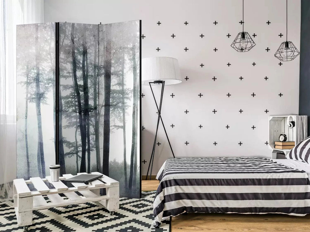 Fototapetes - Mierīgs skats uz kokiem un krūmiem rīta miglā - pirkt G-ART