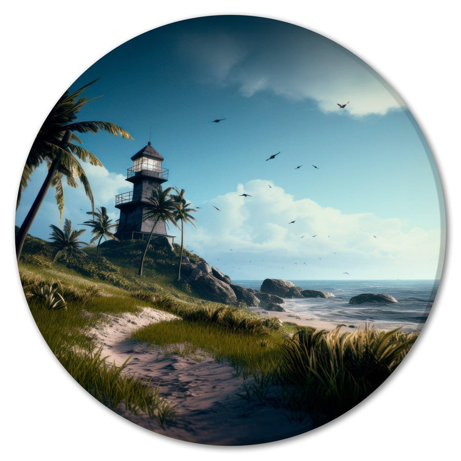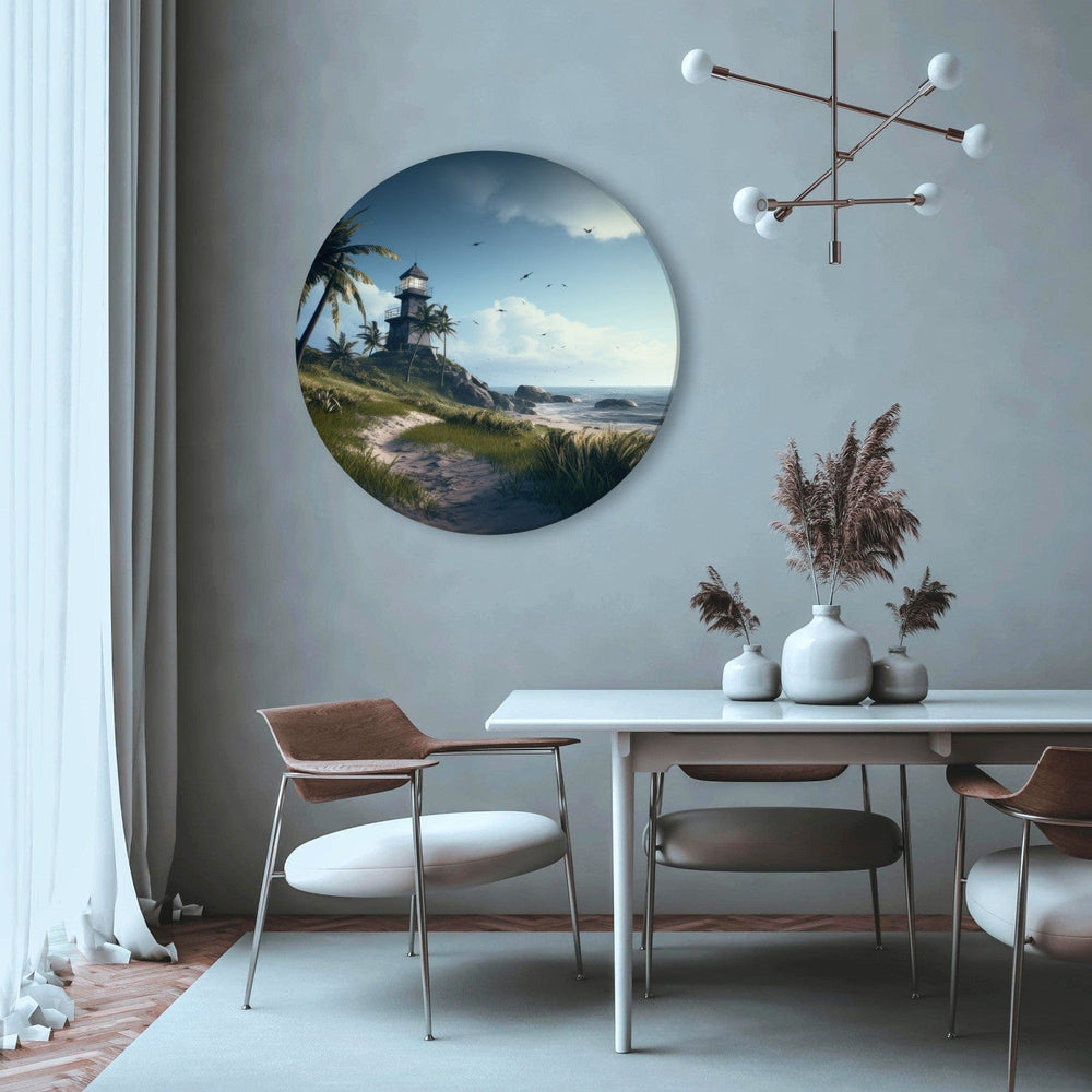 Apaļa glezna - Tropu ainava ar bāku un pludmali - 151594 G-ART