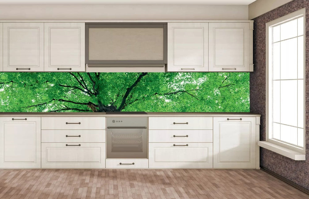 Jaunākās virtuves dizaina tendences pievērš uzmanību pašlīmējošām foto tapetēm virtuves aizmugurējai sienai. Tā vietā, lai noklātu virtuves aizmugurējo sienu ar flīzēm, to var noklāt ar plēvi.
