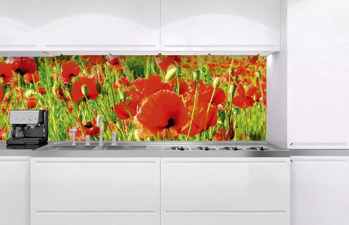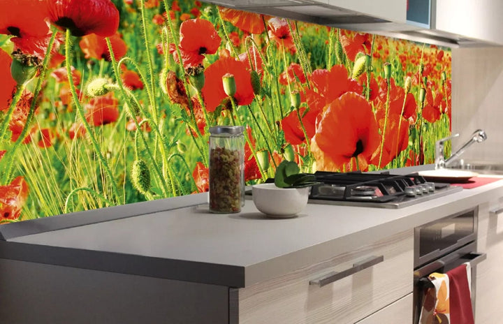 Fototapetes virtuvei ar lamināciju, pašlīmējošas plēve un flizelīns - Sarkanās magones (180x60 cm)
