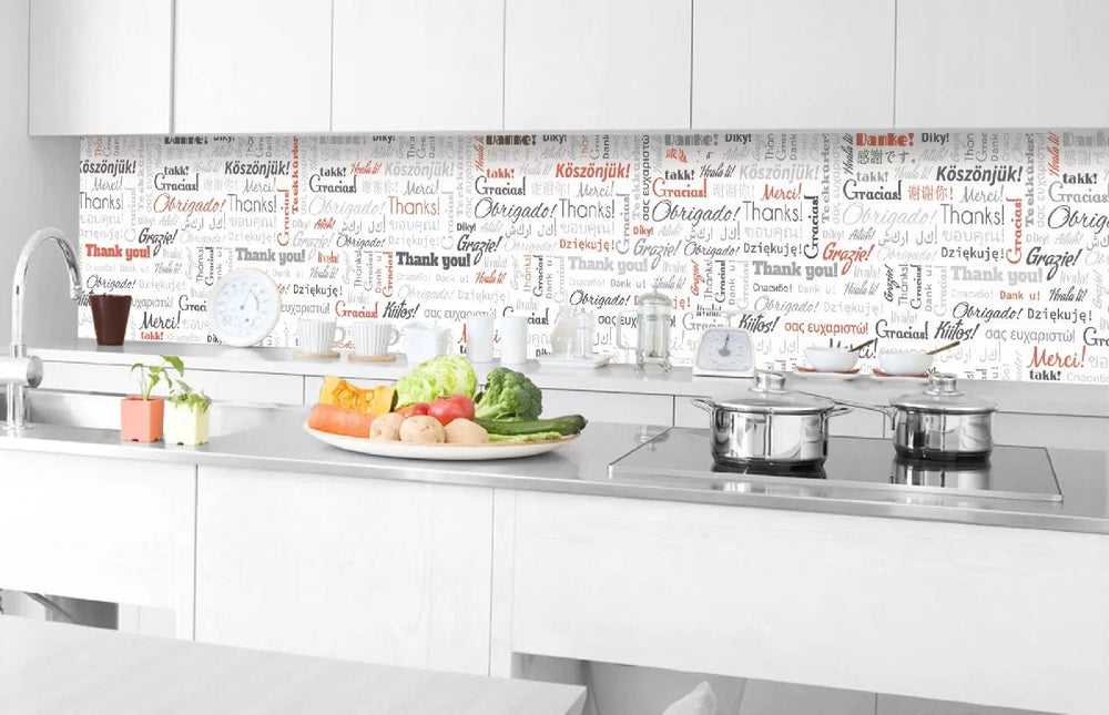 Jaunākās virtuves dizaina tendences pievērš uzmanību pašlīmējošām foto tapetēm virtuves aizmugurējai sienai. Tā vietā, lai noklātu virtuves aizmugurējo sienu ar flīzēm, to var noklāt ar plēvi.