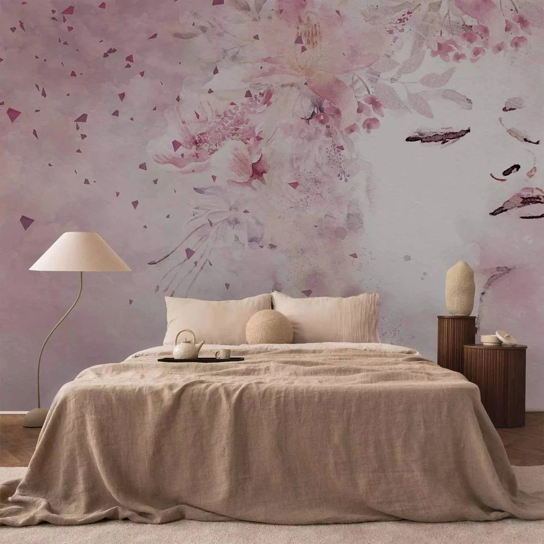 Fototapetes ar sievietes portretu, rozā krāsā - Pavasara sieviete - 135028