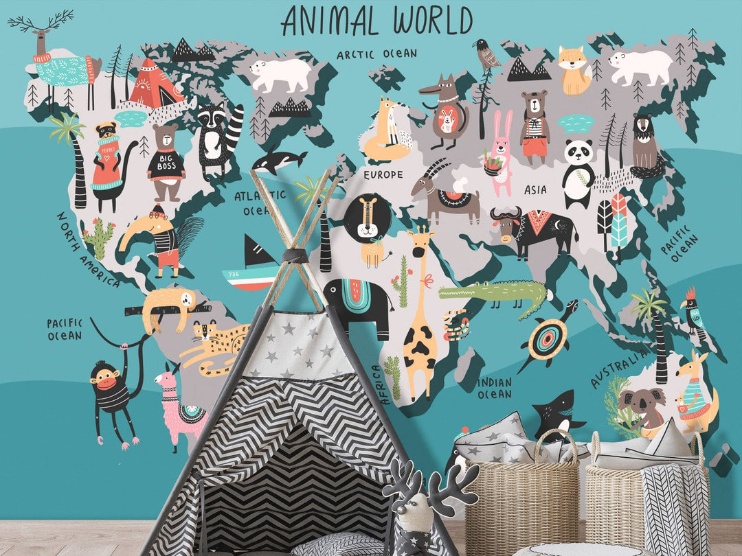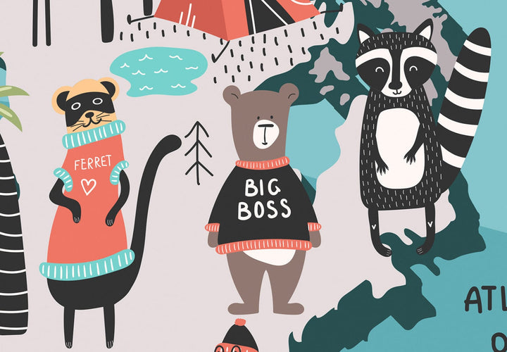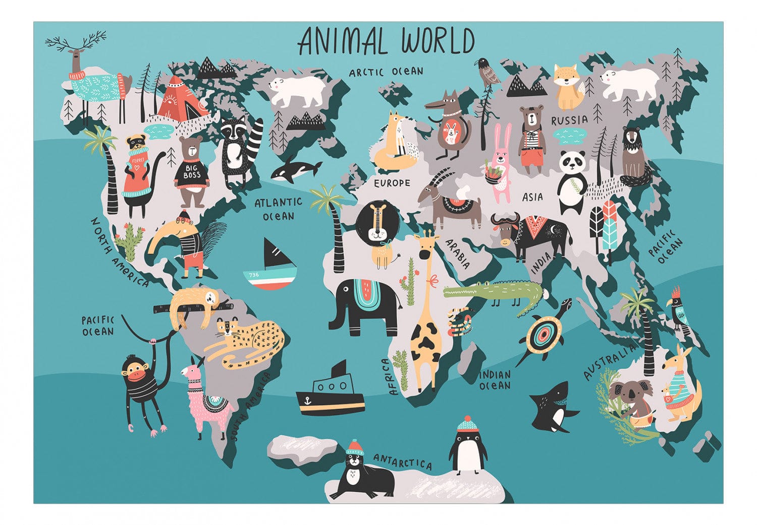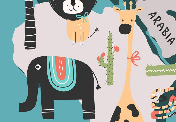 Fototapetes bērnistabai - Krāsaina pasaules karte ar dzīvniekiem - 135105