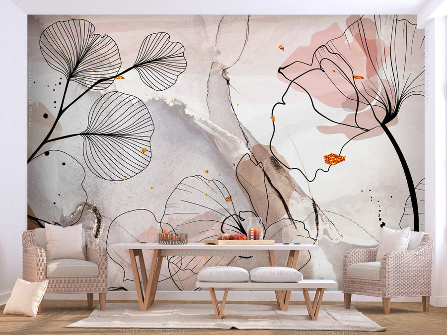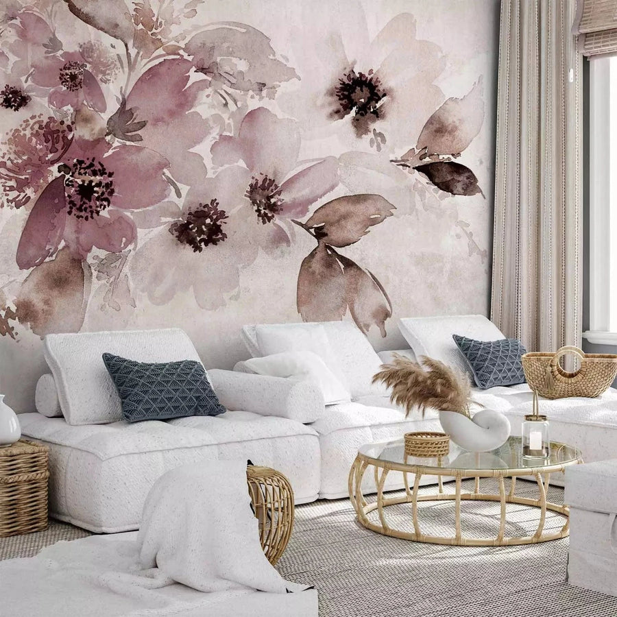 Fototapetes ar ziediem pasteļtoņos - rozā toņi - viesistabai G-ART